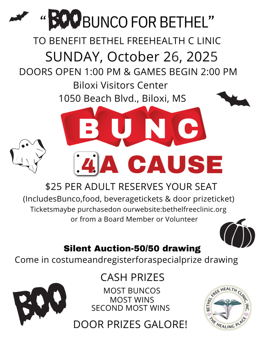 The Bethel Free Health Clinic, Inc. is a registered charity in the State of Mississippi. We are a 501(c) 3 nonprofit, founded within days of Hurricane Katrina to meet the medical needs of Coast residents.